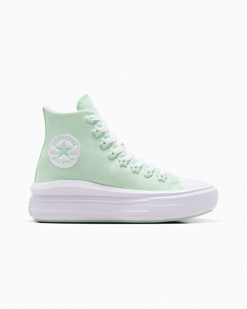 3D-casted rubber gems bring '90s energy to lightweight platforms. BE KIND, REWIND You don't have to be a '90s baby to love these platforms. Here's the 411: Feel-good colors and playful pops of stars, hearts, and flowers put a nostalgic spin on your go-to high tops. Throw it back to pre-Y2K times with fresh, semi-charmed platform Chucks. WHY YOU SHOULD BE DOWN - High-top platform shoe with a canvas upper - OrthoLite cushioning helps provide optimal comfort - Star and heart-shaped molded eyelets add a touch of nostalgia - Lightweight platform sole ups the height without the bulk - Iconic Chuck Taylor ankle patch - SKU: A08100C
