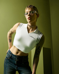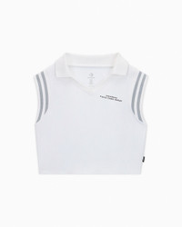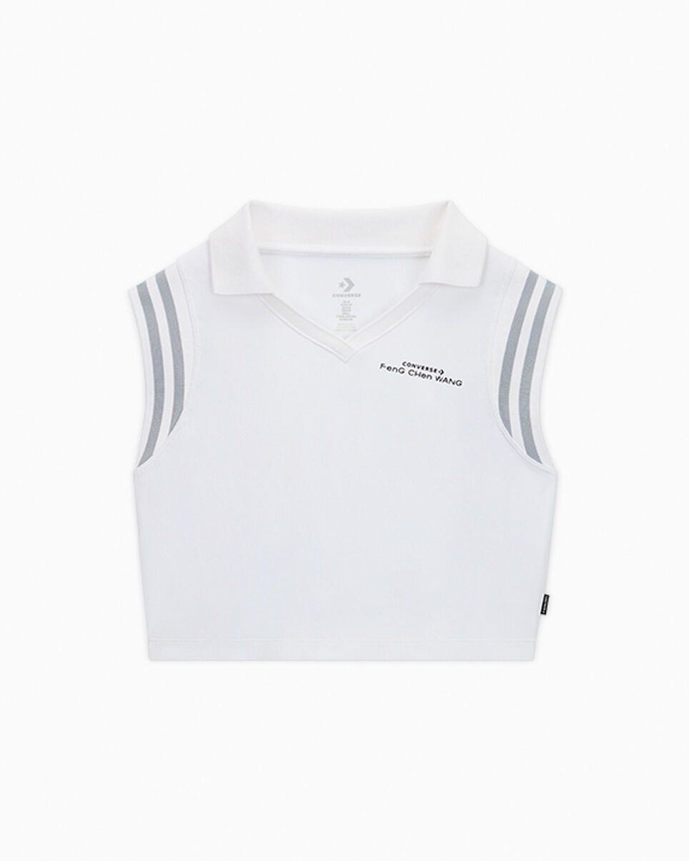 Influential Chinese designer Feng Chen Wang brings her deconstructive design approach to a limited-edition sleeveless polo. CONVERSE x FENG CHEN WANG Subversive sport: Influential Chinese designer Feng Chen Wang drops a new collection of Converse apparel, reinterpreting classic garments through her signature conceptual lens. Her deconstructive approach transforms modern staples into distinctive, one-of-a kind pieces with nods to Converse sneakers. This limited-edition polo puts an unexpected sleeveless twist on a traditional shirt style. WHY YOU SHOULD BE DOWN - Limited-edition Converse polo designed by Feng Chen Wang - Cotton jersey construction - Knit ribbed neck and striped armhole - Silicone cobranded wordmark print - 62% COTTON, 33% POLYESTER, 5% SPANDEX (ELASTANE) - SKU: 10027477-A01