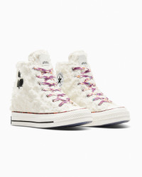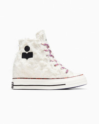 The French fashion icon unites her famous wedge sneaker with the premium Chuck 70. CONVERSE X ISABEL MARANT The French fashion brings her famous wedge sneaker concept to the premium Chuck 70, giving the iconic silhouette a unique elevated stance. Blending effortless luxury style cues with classic Converse details, the limited-edition design captures the essence of Isabel Marant’s laid back but elevated aesthetic. Sophisticated materials, raw edge overlays and vibrant swirls of color create a distinctive carefree vibe. WHY YOU SHOULD BE DOWN - Limited-edition high top wedge sneaker designed by Isabel Marant - 2.5 inch internal wedge - Frayed cotton and polyester jacquard upper with multi-colored marble transfer print pinstripes - Translucent outsole with matching multi-color print - Isabel Marant branded tongue label - SKU: A10222C