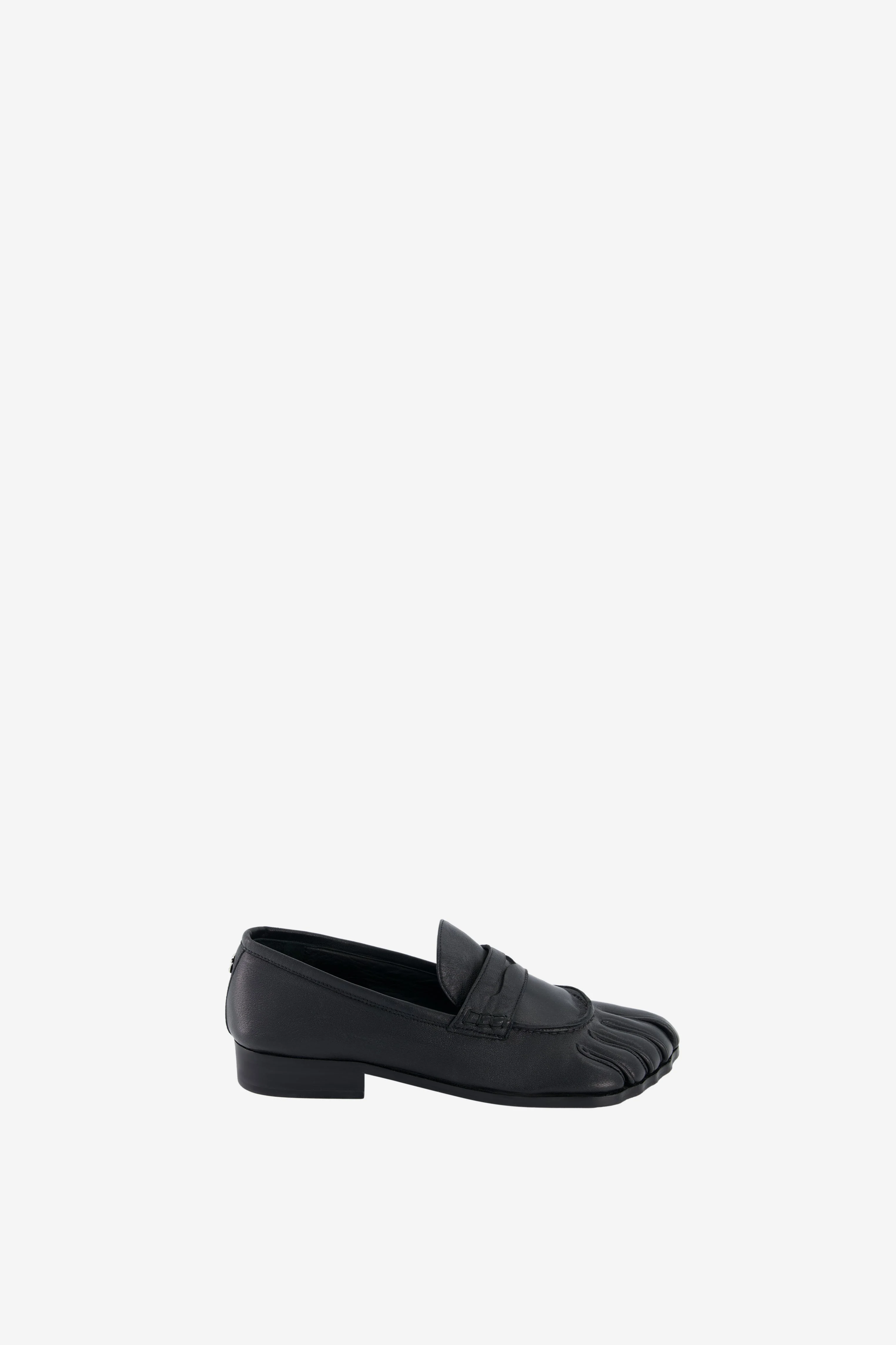 The 5T Mocassin combines tradition with the unexpected, featuring distinctive five-toe detailing and a low-profile silhouette. Finished in a smooth black leather with a subtle shine. The bold reinterpretation of a classic shape - definitely to be seen. DETAILS - Composition: Leather - Made in: Spain - Sku: COPSH88F6060