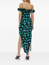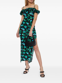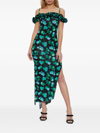 ruffle-detail midi dress Highlights - Black - Concealed side fastening - Spaghetti straps - Off-shoulder - Asymmetric hem Imported Composition Viscose 100%