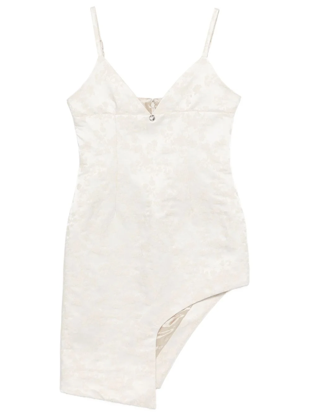 asymmetric floral-jacquard mini dress Highlights - Beige - Floral jacquard - Spaghetti straps - V-neck - Asymmetric hem - Rear zip fastening Imported Composition Lining: Viscose 100% Outer: Cotton 72%, Polyester 28% SIZE & FIT Model measurements Height 5 ft 10 in(1.77 m) Bust/Chest 33.07 in(84 cm) Hips 37 in(94 cm) Waist 24.8 in(63 cm) FittingInformation Designed for a slim fit that sits just away from the body offering a close yet comfortable fit The adjustable shoulder straps allow for a preferred fit when worn Made from a midweight non-stretch fabric Washing instructions Dry Clean Only