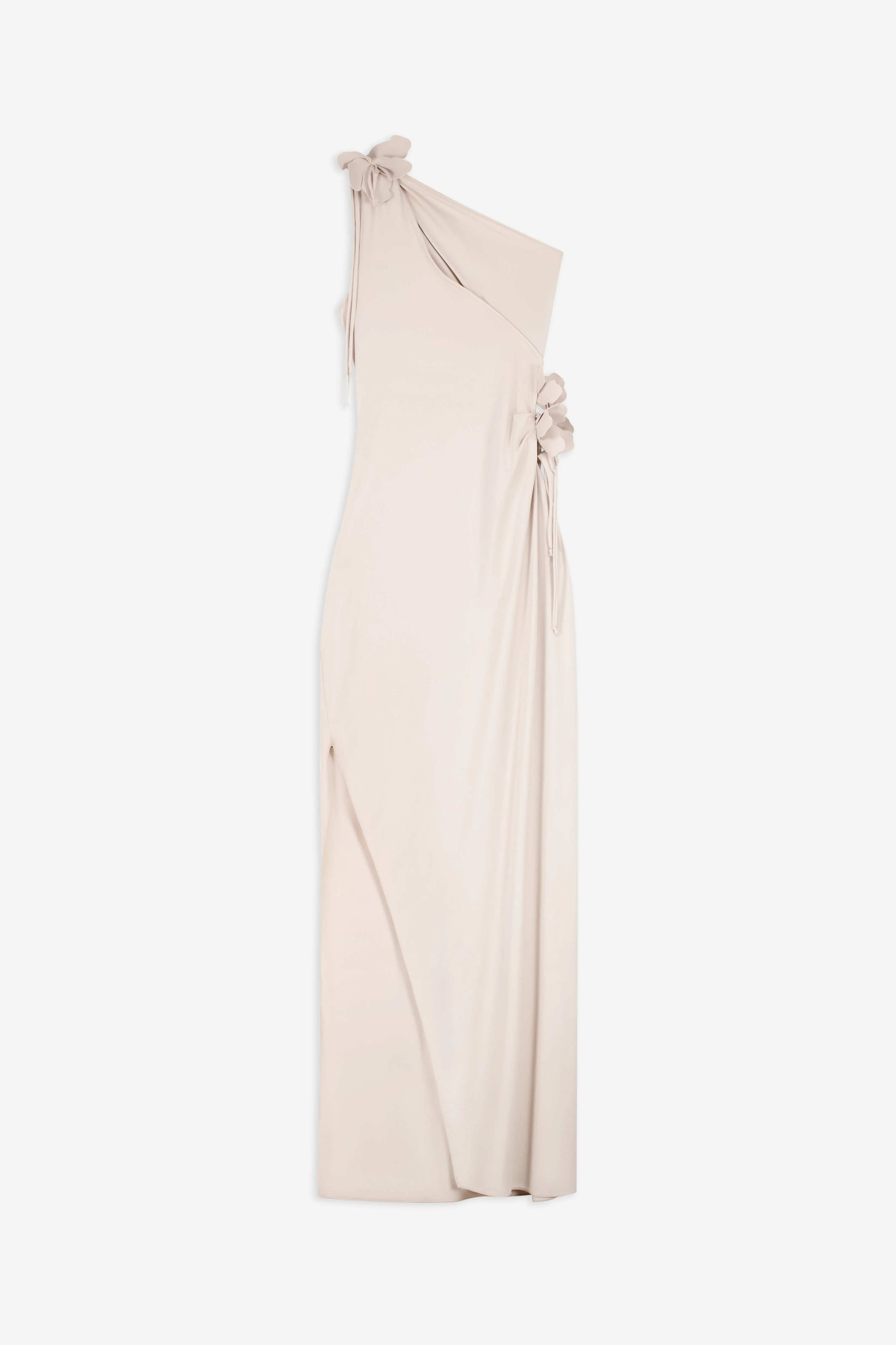 A modern icon, the Asymmetric Flower Gown reimagines red carpet codes with a sleek, architectural feel. Cut from smooth technical jersey with a luxe, fluid stretch, it features Coperni's signature petal knots at the shoulder and waist. The one-shoulder style flows into a floor-length hem with a clean side slit, all rendered in a soft beige tone that feels timeless. DETAILS - Composition: Polyamide - Made in: France - Sku: COPR213F5021