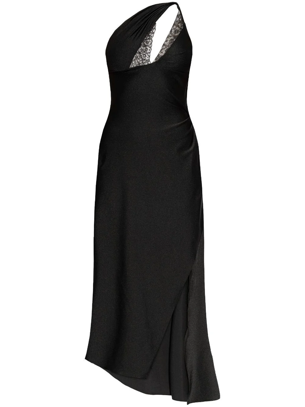 Sweeping across one shoulder, this dynamic dress is cut from black stretch jersey that hugs the body in all the right places. It has fluid, asymmetrical shape from the waist down, enhanced by a deep slit that reaches high towards the thigh. Details Black COPR135545 80% Polyamide 20% Elastane Made in Italy Size and Fit Model is 174 cm / 5.7 ft and wears size S
