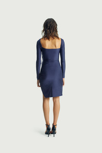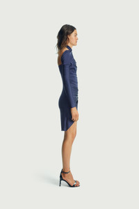 Made from stretchy deep blue jersey, Coperni's asymmetric draped minidress uses delicate ruching to create a flattering body-contouring style. Longer at the back, the dress has a criss-cross neckline and a daring cut-out panel that 'knots' beneath the right shoulder. A removable Coperni logo brooch elegantly draws the material towards the left hip adding a dynamic sweep to this sculptural look. Details <!-- td {border: 1px solid #cccccc;}br {mso-data-placement:same-cell;} --> Blue 80% Polyamide 20% Elastane COPJS65545EX Made in Italy Size and Fit True to size. Model is 177 cm / 5'8 ft and is wearing size S