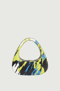 Curved triangular baguette bag with a concealed double ended zip in abstract print leather. The Baguette Swipe bag offers a more sculptural take on classic baguette styles. Crafted from smooth Italian leather, it has been embellished with a lime, turquoise snd black abstract print inspired by motorcycle flames. Its sleek shape is big enough to carry all your daily essentials. Details Multicolour 100% Calf Leather COPBA04488 Made in Italy Size and Fit Height 26cm /10in Width 26cm /10in Depth 5.5cm/2.2in