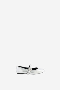 Mary Jane ballet flats crafted from supple silver leather with a round toe silhouette and thick supportive straps. They fasten with a statement C-logo buckle. Details Silver COPSH74F6051 Leather Made in Spain Size and Fit True to size.