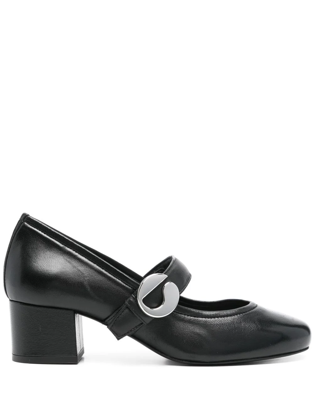 50mm leather pumps Highlights - Black - Strap fastening - Almond toe - Branded leather insole - Leather outsole Imported Composition Lining: Lambskin 100% Sole: Calf Leather 100%, Rubber 100% Outer: Calf Leather 100% SIZE & FIT Measurement HEEL 1.96 in(5 cm)