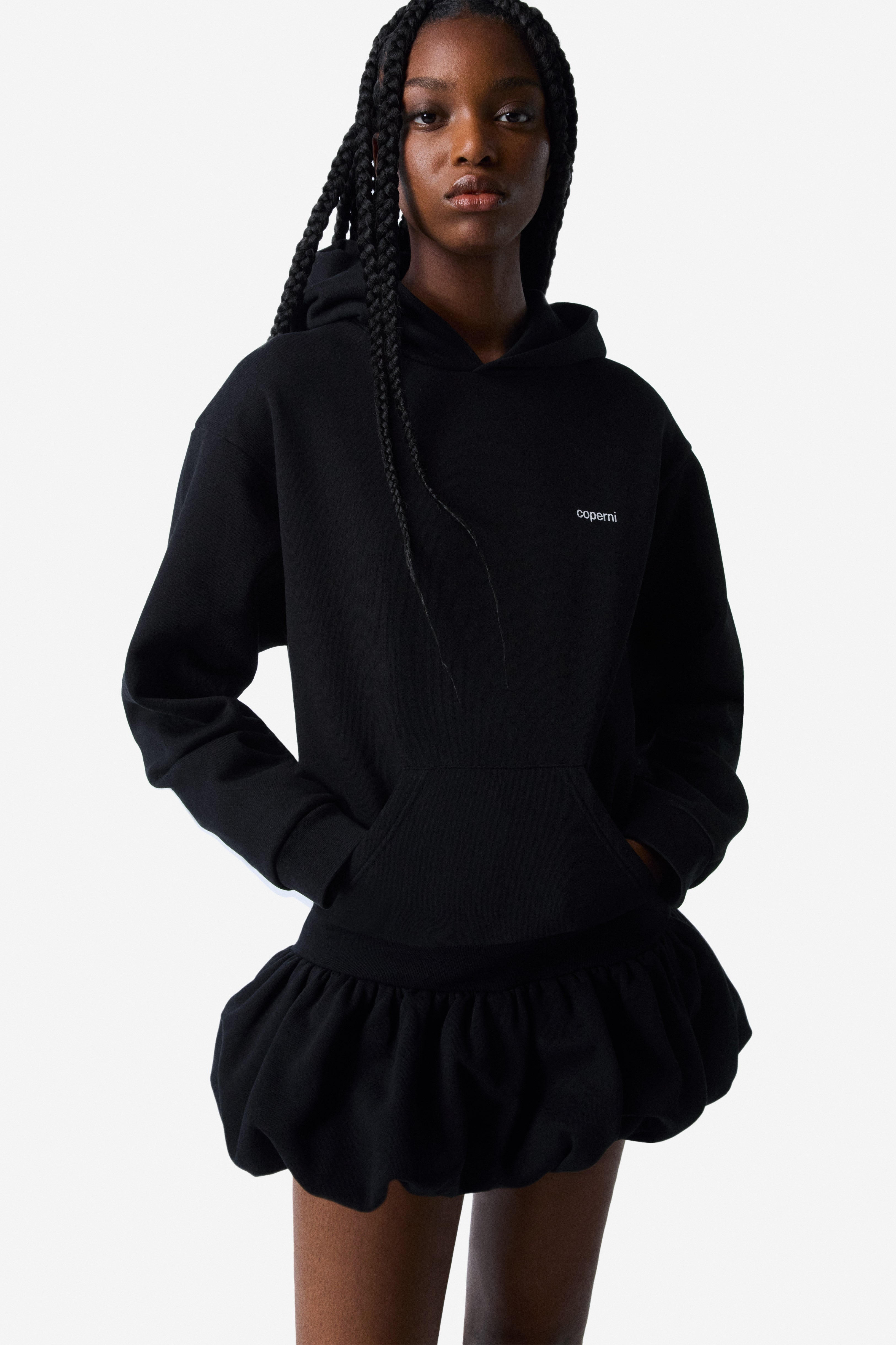 An instantly stylish piece, our hybrid sweatshirt dress has a seamless dual construction: a top that's loose and slouchy, connected to an exuberant gathered hem or bubble skirt. This everyday staple is finessed with a white Coperni logo at the front. Details Black-White Print COPJS119F5010 79% Cotton 21% Polyester Made in Portugal Size and Fit Model is 178 cm / 5.10 ft and wears size S