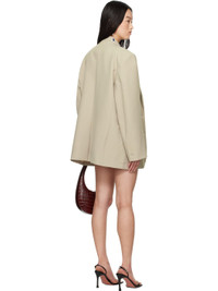 Recycled polyester twill blazer. · Notched lapel · Detachable pin-buckle belt at patch pocket · Darts and patch pockets at front · Vent at mock surgeon's cuffs · Central vent at back · Patch pocket at interior · Full satin lining · Logo-engraved silver-tone hardware Supplier color: Beige Body: 100% recycled polyester. Lining: 52% acetate, 48% viscose. Made in France 251325F057003