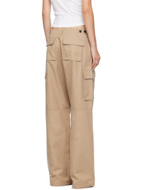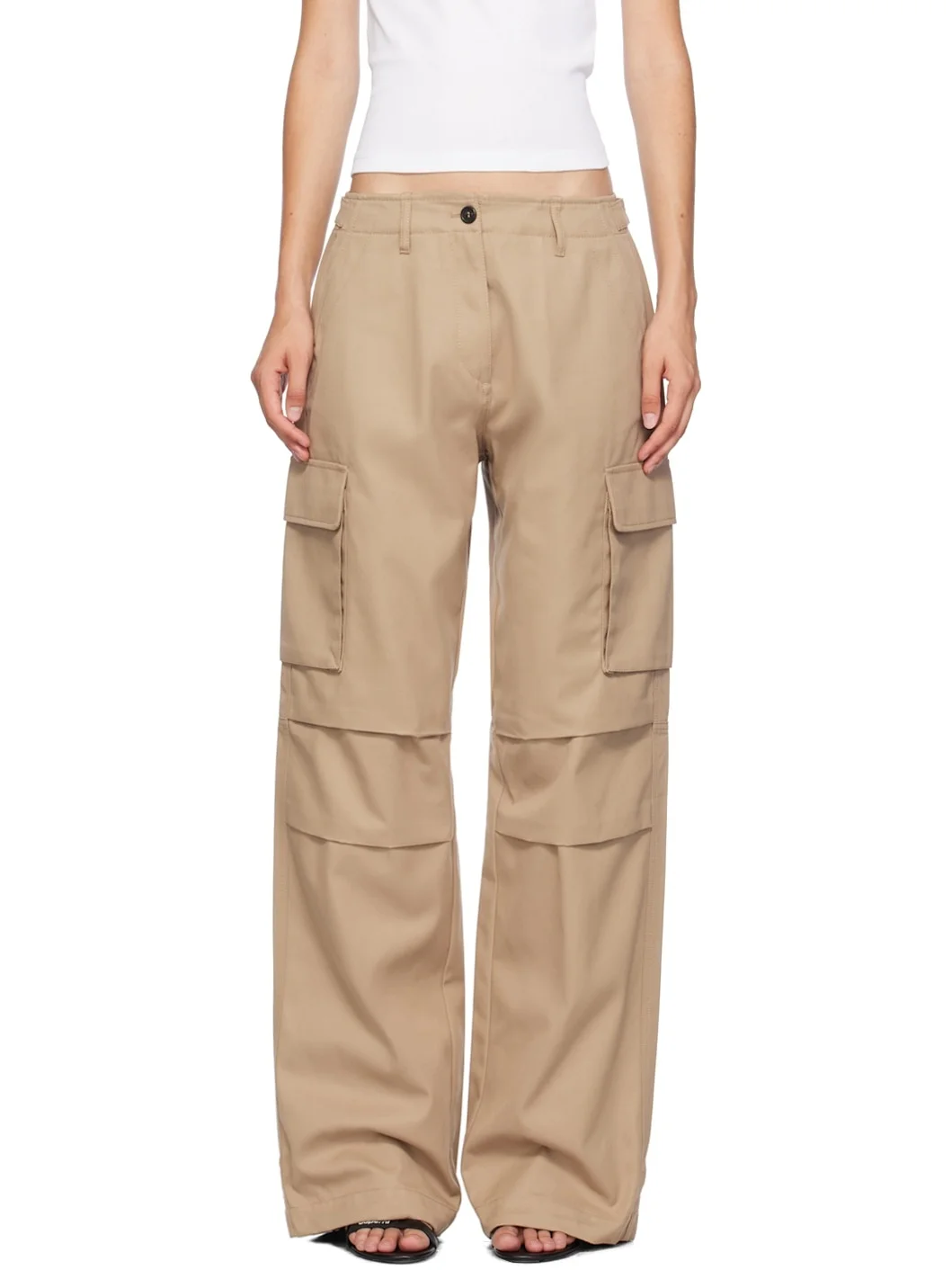 Wide-leg cotton gabardine cargo pants. · Low-to-high-rise · Belt loops · Four-pocket styling · Zip-fly · Tucks at knees · Cargo pocket at outseams · Adjustable button tab at back waistband Supplier color: Beige 100% cotton. Made in Italy 242325F087008