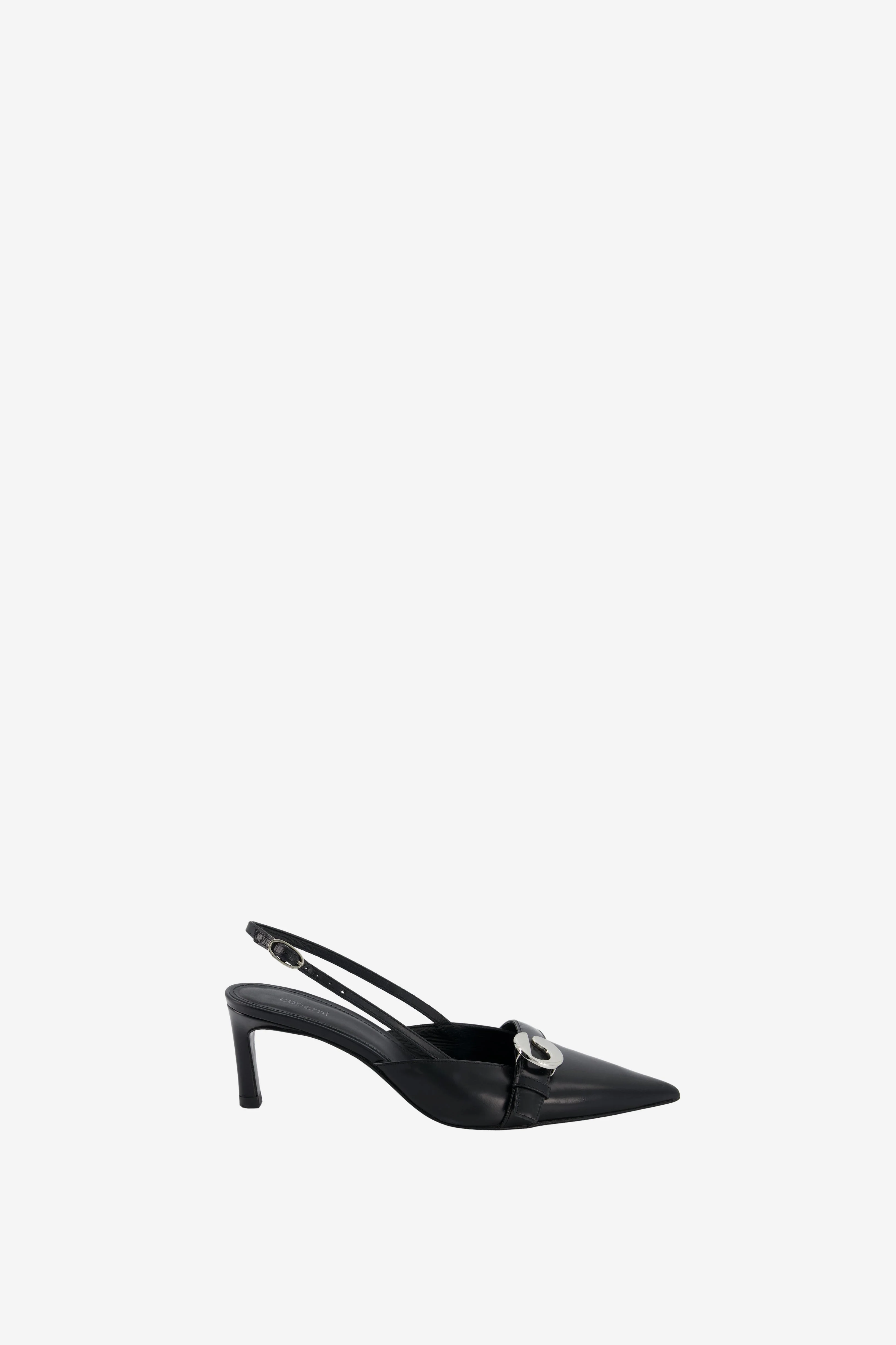 Delicately assertive, the Stiletto in black leather fuses utilitarian codes with refined femininity. The classic slingback silhouette is accented by a miniature belt detail across the toe. DETAILS - Composition: Leather - Made in: Spain - Sku: COPSH92F6057