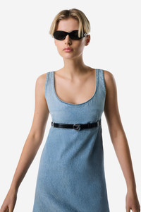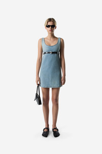 Channelling a retro style, this minidress has a classic shift cut with a flattering scoop neckline. Crafted from faded vintage-look denim, it is gently gathered below the bust thanks to a slim black leather belt with a silver-toned C logo. The belt can also be removed and looped into your favourite jeans. Details Blue Washed COPR148F2024 100% Cotton Made in Portugal Size and Fit Model is 175 cm / 5.9 ft and wears size S