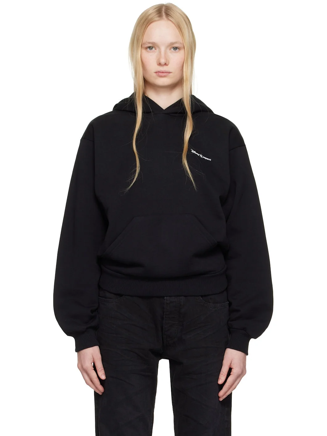 Organic cotton-blend fleece hoodie. · Horn appliques at hood · Logos bonded at chest · Kangaroo pocket · Rib-knit hem and cuffs · Dropped shoulders Part of the Disney capsule. Supplier color: Black 79% organic cotton, 21% polyester. Made in Portugal 252325F097002