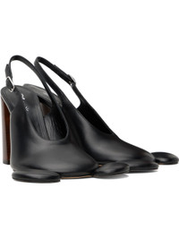 Buffed leather heels in black. · Graphic appliques at toe · Pin-buckle slingback strap · Stacked leather heel with rubber injection · Polished leather sole · Heel: H4" Part of the Disney capsule. Supplier color: Black Upper: leather. Sole: leather. Made in Italy 252325F122000