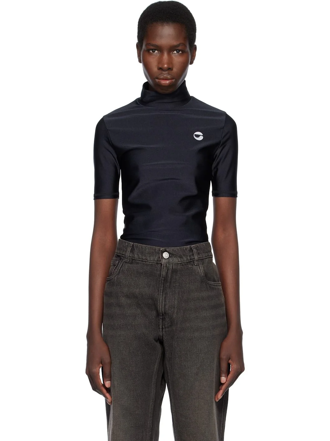 Black High Neck Fitted Top