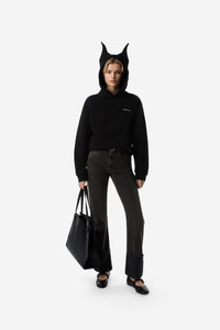 As its name suggests, this sweatshirt has a mischievous side inspired by everyone's favourite malevolent fairy, Maleficent. The corners of the hood have been intricately shaped to form two exaggerated curved horns, just like the character. Like all good villains, the top has a soft side: it is crafted from pure and comfortable organic cotton. Details Black DJS151F5035 100% Organic Cotton Made in Portugal