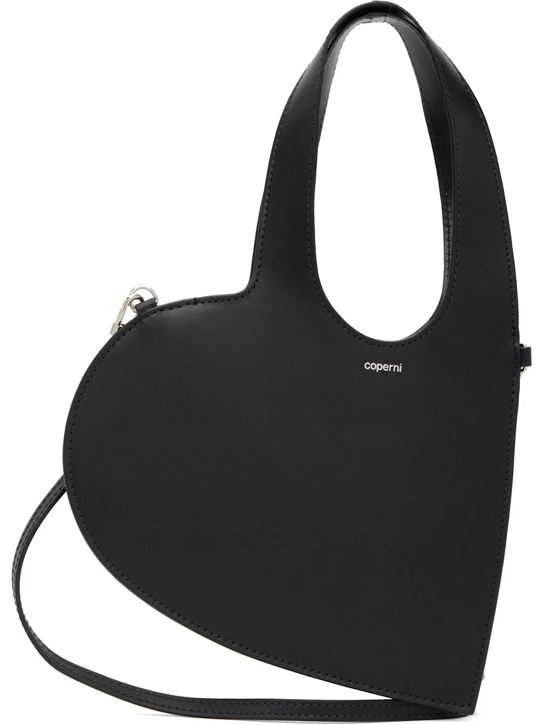 Heart-shaped buffed leather shoulder bag. · Twin carry handles · Detachable and adjustable crossbody strap · Logo stamp at face · Buffed leather lining · H6.25" x W8" · Total height: H12" Supplier color: Black Leather. Made in Italy 252325F048009
