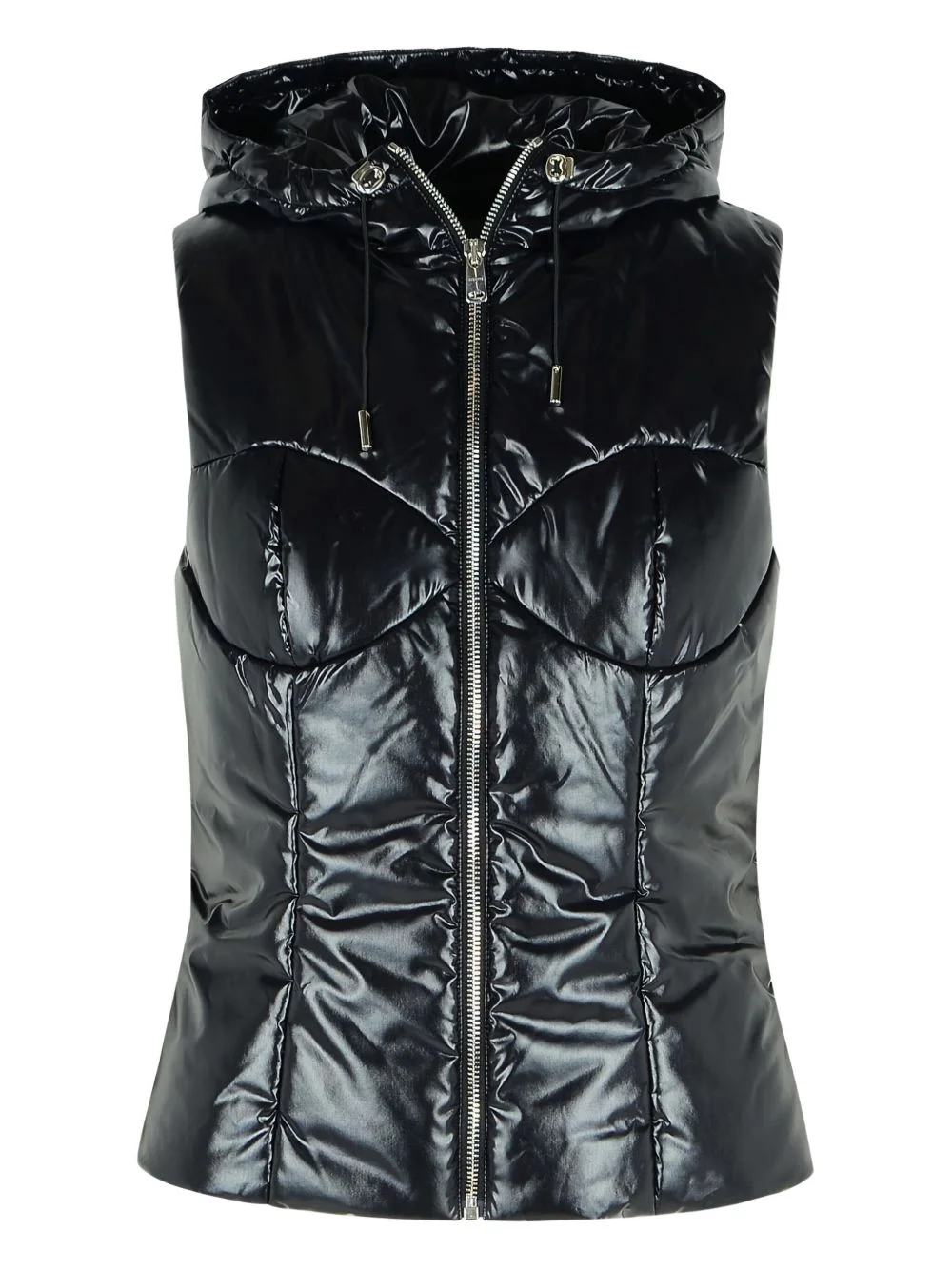 drawstring-hood zip vest Highlights - Black - Drawstring hood - Zip fastening Made in Italy Composition Outer: Nylon 100% Lining: Acetate 100%, Viscose 100% Washing instructions Read Manufacturer Guidelines
