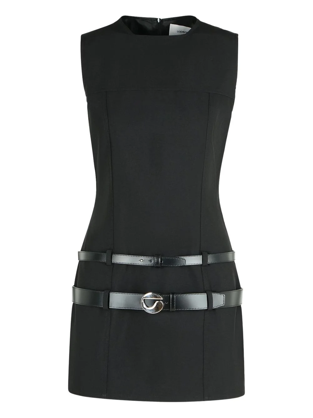 double-belt shift mini dress Highlights - Black - Crew neck - Sleeveless - Adjustable belts - Removable belts - Back zip closure Imported Composition Polyester 100% Washing instructions Read Manufacturer Guidelines