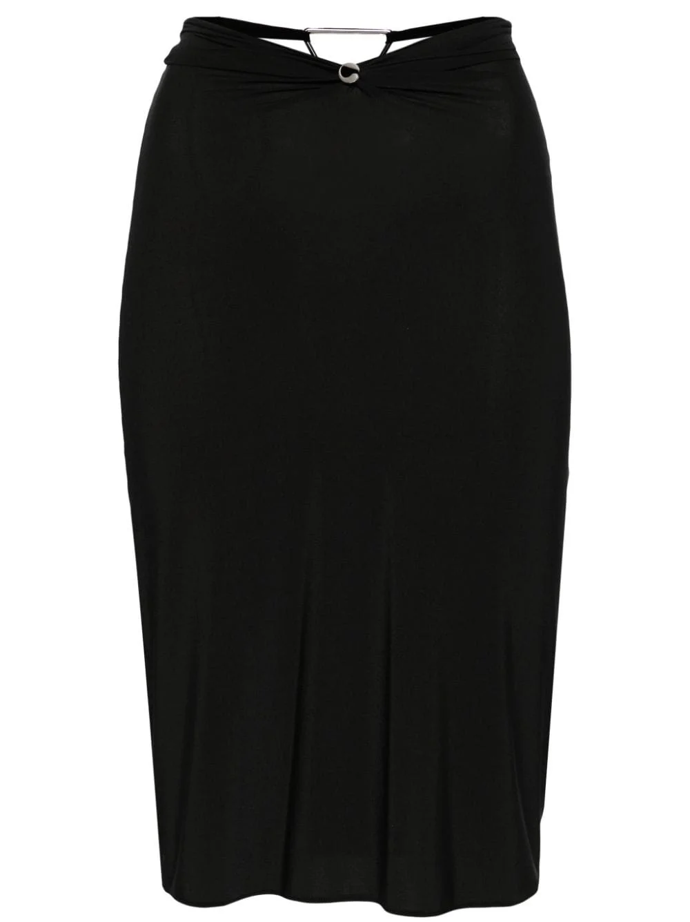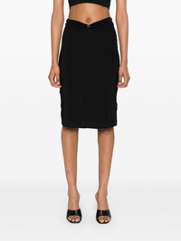 Triangle-hardware midi skirt Highlights - Black - Stretch-jersey - Logo plaque - Triangle hardware detailing - Gathered detailing - Pencil silhouette - Straight hem - Mid-length - Silver-tone hardware Made in Italy Composition Polyamide 88%, Elastane 12% SIZE & FIT Model measurements Height 5 ft 10 in(1.77 m) Bust/Chest 33.07 in(84 cm) Hips 37 in(94 cm) Waist 24.8 in(63 cm) FittingInformation This midi-length skirt is intended to be worn just below the waist Made from a midweight stretch fabric, this piece offers elasticity and flexibility when worn This piece fits true to size – take your usual size