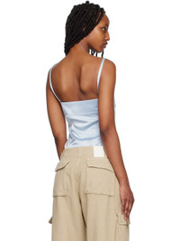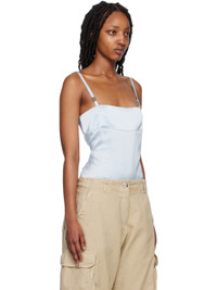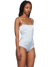 Viscose satin bodysuit. · Paneled construction · Straight neck · Elasticized cuffs · Press-stud fastening at bottom · Logo hardware at adjustable spaghetti straps Supplier color: Ice blue 100% viscose. Made in Bulgaria 231325F358007