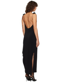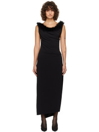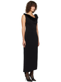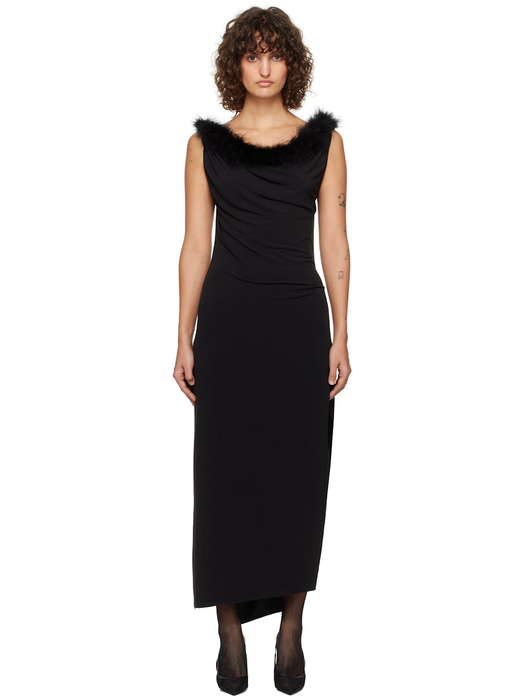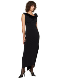 Stretch polyester jersey midi dress. · Turkey feather trim at cowl neck · Slit at side seams · Spaghetti straps Supplier color: Black Trim: 100% turkey feather. Body: 95% polyester, 5% elastane. Made in Italy 242325F054012