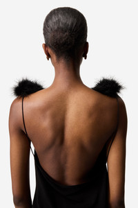 Elegantly draped and soft against the skin, this tank is designed for a smooth flattering fit that follows your silhouette. With its thick trim of delicate real black feathers around the neckline, it's a timeless refined piece that can be effortlessly styled with anything. Details Black COPT73F5022 95%Polyester 5% Elastane Made in Italy Size and Fit Model is 178 cm / 5.10 ft and wears size S