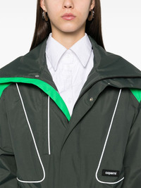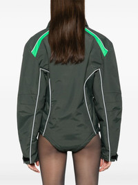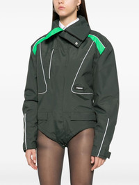 body jacket Highlights - Moss green - Colour-block panelled design - Bodysuit design - Front press-stud and zip fastening - Reflective detailing - Contrasting trim - Taped seams - Stand-up collar - Concealed press-stud fastening - Drop shoulder - Long sleeves - Touch-strap cuffs - Front zip fastening pockets - Rubberised logo detail - Partial lining - Internal elasticated toggle detailing - Asymmetric hem Made in Italy Composition Lining: Acetate 52%, Viscose 48% Outer: Polyamide 100%, Polyurethane 100% SIZE & FIT Model measurements Height 5 ft 10 in(1.78 m) Bust/Chest 33.85 in(86 cm) Hips 36.61 in(93 cm) Waist 26.77 in(68 cm) FittingInformation Designed to be unstructured, offering a loose fit throughout Made from a midweight non-stretch fabric
