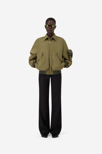 This oversized bomber jacket redefines utilitarian staple with refined precision. Cut with voluminous sleeves and soft structure, it features angular flap pockets and a signature Coperni pouch on the arm. The ribbed trims and zip closure ground the piece in function, while the look remains sharply modern. DETAILS - Composition: Recycled Polyamide - Made in: Portugal - Sku: COPBL32F3003