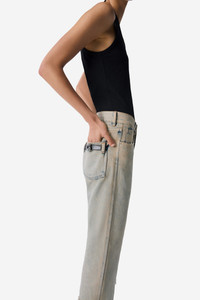 Crafted from soft premium grey denim, these mid-rise jeans have a loose boyfriend fit with extra-long legs and a slighted faded look. The hems can be reversed to create exaggerated turn-ups for a spin on a classic style, as seen on Coperni's SS25 runway held at Disneyland Paris. Details Grey Greige COPP122F2035 100% Cotton Made in Italy