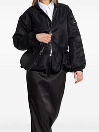 gathered-hem bomber jacket Highlights - Black - Two-way zip fastening - Sleeve flap pocket - Ribbed band collar - Long sleeves Made in Italy Composition Polyester 100%