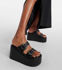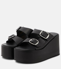 Product Details - Upper: leather - Lining: leather - Sole: leather insole, rubber sole - Toe shape: round open toe - Made in Spain - Includes: dust bag, shoe box - Closure: buckle fastening - Item number: P00926740 Size & Fit - Fits small to size - we recommend trying one size larger - European sizes - 6cm-2.5" platform (size EU 38) - 10cm-4" wedge heel (size EU 38)