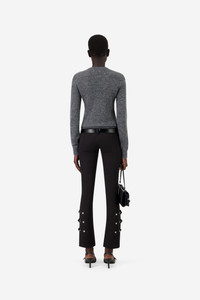 A classic, grey knit, reinterpreted. A closer look reveals a cut-out sweeping across the chest, secured with a matte black buckle. Knitted from a soft polyamide and wool blend this sweater balances technical precision with quiet sensuality. Designed to catch the light and the eye. Details Grey COPML159Y1002 Polyamide/Wool Made in Italy