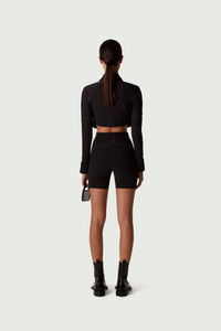 High-rise stretch bike shorts. Crafted from comfortable stretch fabric, our sporty black shorts have a supportive waistband and a smoothing silhouette. Details Black COPP36525 Made in Italy Size and Fit Model is 174 cm / 5.7 in and wears size FR36
