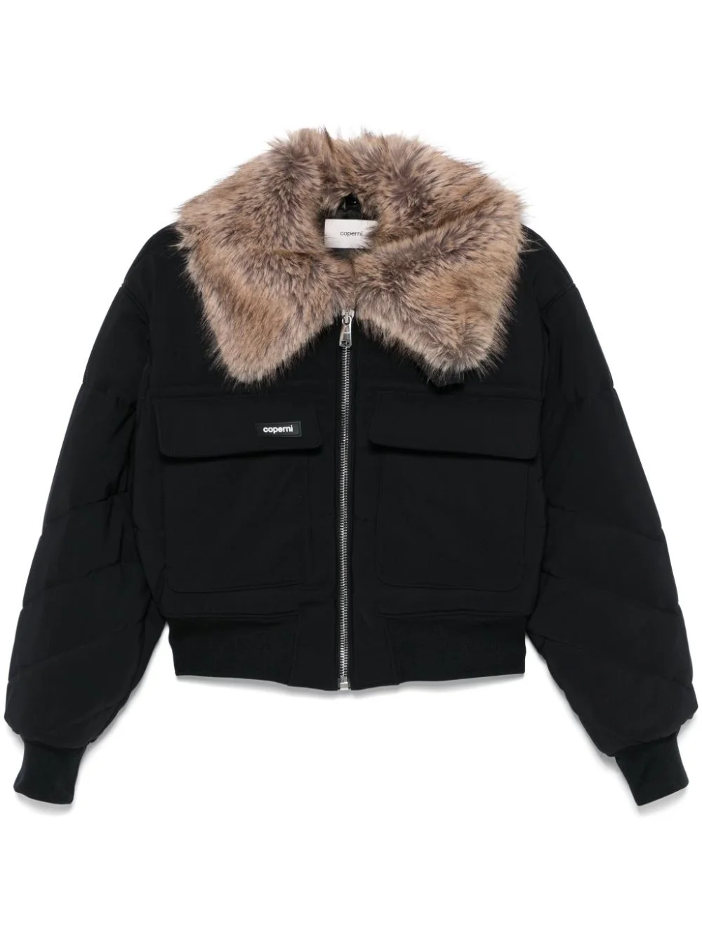 C+ bomber jacket Highlights - Black - Jersey texture - Uv protection - Padded design - Front zip fastening - Detachable faux-fur collar - Drop shoulder - Long sleeves - Two chest flap pockets - Logo patch at the chest - Ribbed cuffs and hem - Full lining - Cropped Imported Composition Lining: Polyester 100%, Viscose 100% Outer: Polyamide 73%, Elastane 27% SIZE & FIT Model measurements Height 5 ft 11 in(1.8 m) Bust/Chest 31.49 in(80 cm) Hips 36.61 in(93 cm) Waist 24.4 in(62 cm) FittingInformation Designed for a relaxed fit, this piece allows for comfort and movement when worn The ribbed hem offers a close, comfortable fit Made from a padded stretch fabric, giving it elasticity and a flexible fit
