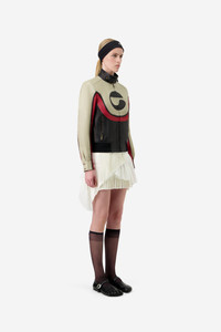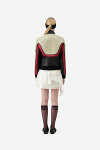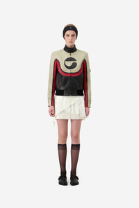A bold statement piece that reinterprets classic biker style through our graphic lens, featuring curved panels in ivory, scarlet and black. Topped with a signature C-emblem across the chest. Tailored with precision, it invites a playful sense of futurism in a single striking garment. DETAILS - Composition: Leather - Made in: Italy - Sku: COPOW45F6073B