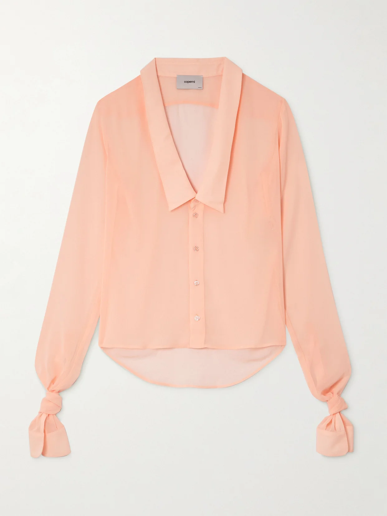 Coperni's blouse stood out on the Spring '24 runway thanks to its exaggerated long sleeves. It's cut from pale pink chiffon with a fluid drape and has a plunging V-neckline. Knot the cuffs to create a more understated look.