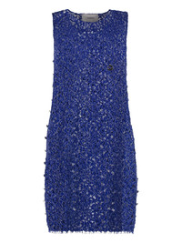 lace floral-pattern mini dress Highlights - Royal blue - Floral lace - Sleeveless - Round neck - Lurex detail Made in France Composition Viscose 70%, Polyamide 28%, Metallised Fibres 2% Washing instructions Read Manufacturer Guidelines