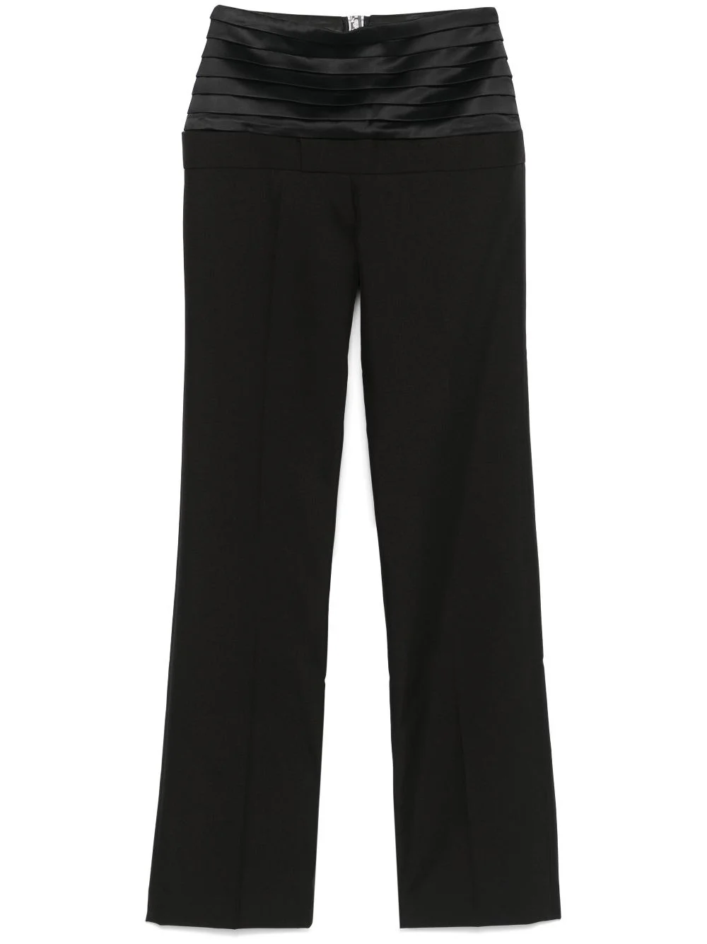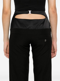 hybrid tailored trousers Highlights - Black - Concealed side zip fastening - Rear clasp fastening - Silver-tone logo plaque - Cut-out detailing Made in France Composition Lining: Acetate 52%, Viscose 48% Outer: Recycled Polyester 100%, Acetate 75%, Silk 25% SIZE & FIT Model measurements Height 5 ft 10 in(1.78 m) Bust/Chest 33.85 in(86 cm) Hips 36.61 in(93 cm) Waist 26.77 in(68 cm) FittingInformation Designed for a straight-leg fit, these trousers allow for a close fit at the waist and an unrestricted, comfortable fit over the leg Made from a midweight non-stretch fabric