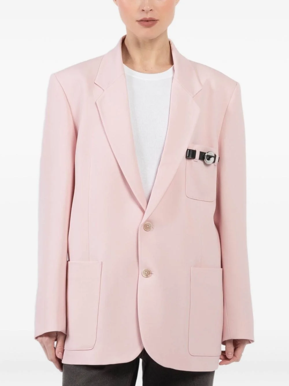 button-up blazer Highlights - Pink - Front patch pockets - Decorative detail - Notched lapels - Button fastening Made in France Composition Virgin Wool 100%