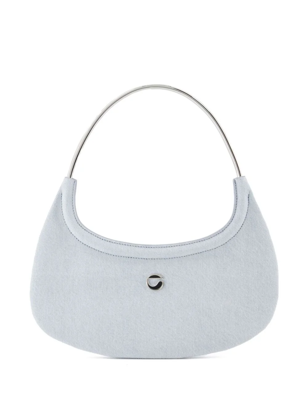 Ring Swipe tote bag Highlights - Powder blue - Rear zip fastening - Single metallic top handle - Main compartment - Silver-tone logo plaque Made in Italy Composition Outer: Denim 100% Lining: Fabric 100% SIZE & FIT Measurement DEPTH 3.93 in(10 cm) HEIGHT 5.9 in(15 cm) WIDTH 7.48 in(19 cm)