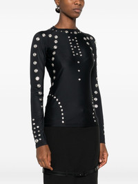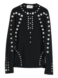 metal-embellished long-sleeve t-shirt Highlights - Black - Long sleeves - Round neck - Metal embellishments - Stud details Imported Composition Polyamide 100%, Metal 100% SIZE & FIT Model measurements Height 5 ft 10 in(1.78 m) Bust/Chest 31.49 in(80 cm) Hips 37 in(94 cm) Waist 23.62 in(60 cm)