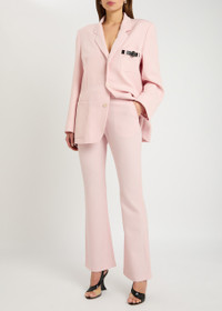Info & Care Coperni woven trousers Belt loops, side slip pockets, faux slit pocket at back, designer applique Concealed hook, button and zip fastenings at front 100% virgin wool Dry clean Size & Fit Inside leg length: 33.5 inches/ 85cm Midweight Straight-leg fit Model is 5'11"/ 180cm and wears a size small