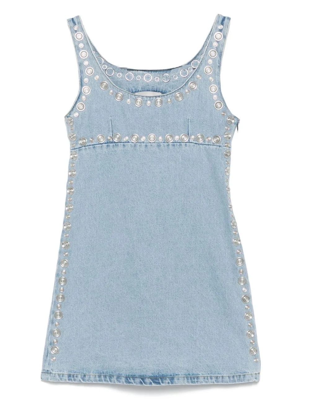 studded denim mini dress Highlights - Light blue - Side zip fastening - Scoop neck - Sleeveless Imported Composition Cotton 100%