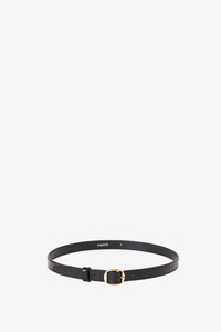 Slim black belt crafted from crocodile patterned leather with an elegant squarish buckle with rounded edges in a golden tone. Details Black/Gold Leather Made In Poland COPBE02838 Size and Fit XS - 90cm / 35.4in S - 95cm / 37.4in M - 100cm / 39.3in L - 105cm / 41.3in XL - 110cm / 43.3in