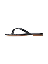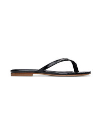 Croc-embossed patent leather flip flops in black. · Open square toe · Logo hardware at thong-style strap · Logo embossed at buffed leather footbed · Rubber injection at heel · Leather sole Supplier color: Black Upper: leather. Sole: leather, rubber. Made in Spain 242325F124000