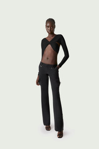 Long sleeved Spandex top with a daring criss-cross neckline. Details Black COPS22JS38545 80% Polyamide, 20% Elastane Made in Portugal Size and Fit Model wears size S