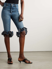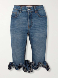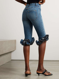 Cut like capri pants, these cropped jeans have a high waist and a slim silhouette. They flare out at the knee thanks to carefully engineered ruffles that fan out with rough zipped edges. Details Blue Denim Made In Italy COPP81252 Size and Fit Model is 175 cm / 5'7" ft and is wearing size FR36. <!-- td {border: 1px solid #cccccc;}br {mso-data-placement:same-cell;} -->