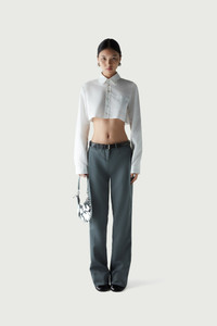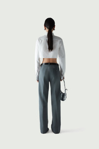 Pure cotton optic white cropped shirt. Our whiter than white cotton shirt has a cropped silhouette crafted to lift slightly at the front and dip delicately at the back. It features a classic collar and two front pockets. A single silver button is embellished with the Coperni C logo. Details Optic White 100% Cotton COPCH27300 Made in Bulgaria Size and Fit True to size. Model is 179 cm / 5'10" ft and is wearing size 36FR